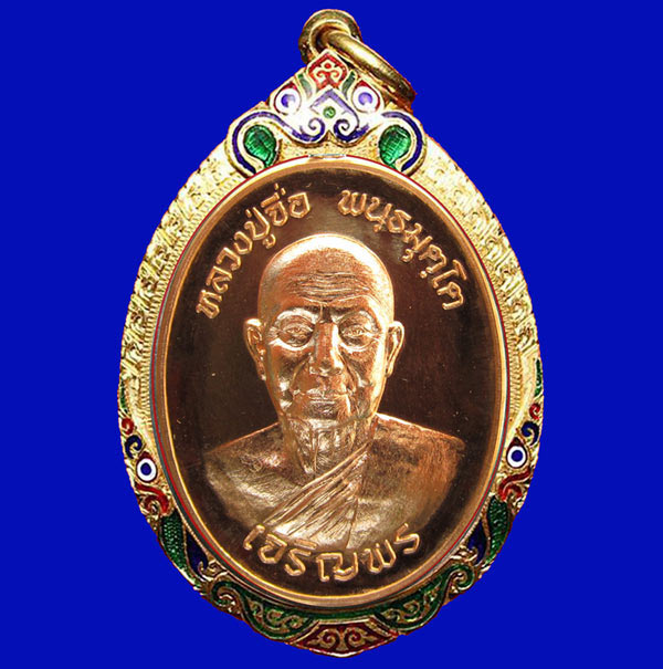 8.3 ทองแดง ผิวไฟ ฝังพลอยแท้ ๙ รอบ ไม่ตัดปีก หลังแบบ (น้ำเงิน ,เหลือง ,ขาว ,เขียว ,แดง ,ม่วง สีละ 66 เหรียญ) ราคา 800 บาท มียอด 2 เหรียญ