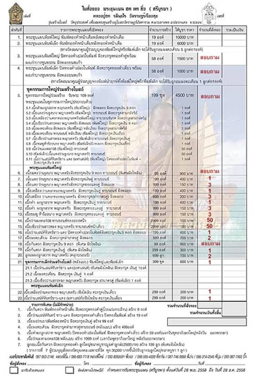 ชุดกรรมการใหญ่ร่วมสร้างโบสถ์ บูชา 4500 บาท รับพระ 109 องค์ / โทรสอบถาม