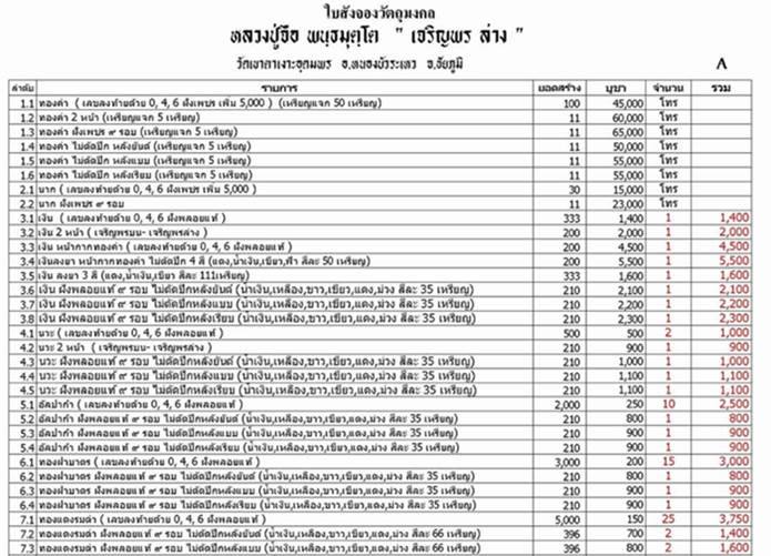 รายการยอดจอง ราคาวัดค่ะ