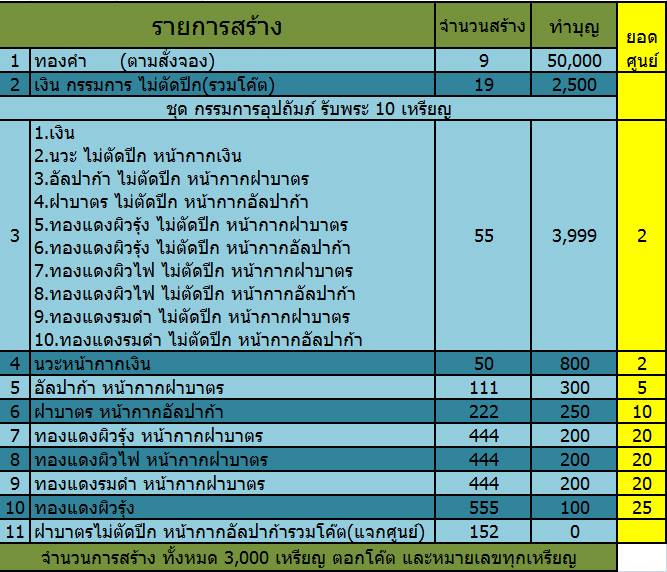 ทางสำนักสงฆ์และลูกศิษย์ใด้จัดสร้างเหรียญออกมาเพื่อให้ญาติโยมร่วมทำบุญ