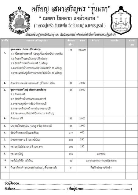 รายการชุด กรรมการเล็ก (รับพระ 14 เหรียญ) สร้าง 234 ชุด มี 2 ชุดๆละ 2,500 บาท