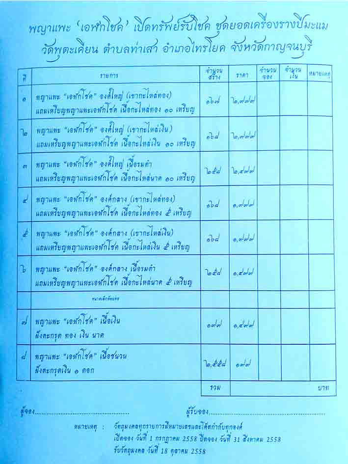 *** ราคาจอง+ ค่าจัดส่ง 100/ท่าน,พระบูชา 200/องค์,กรรมการ 500/ชุด ***