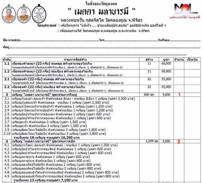 กำหนดรับ : วัตถุมงคล ประมาณเดือนตุลาคม เป็นต้นไป