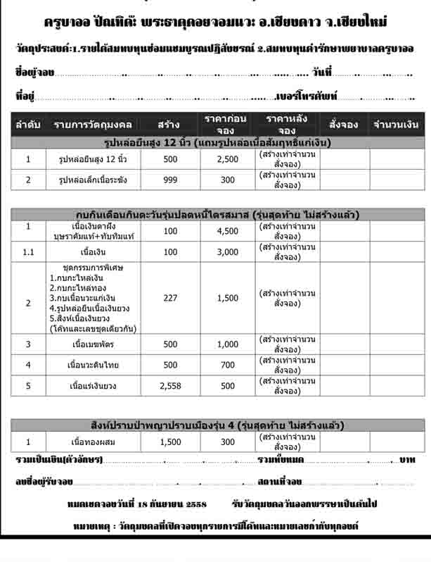 [[[เปิดจอง]]]ไตรมาส 58 รุ่นปลดหนี้ ครูบาออ พระธาตุดอยจอมแวะ อ.เชียงดาว จ.เชียงใหม่