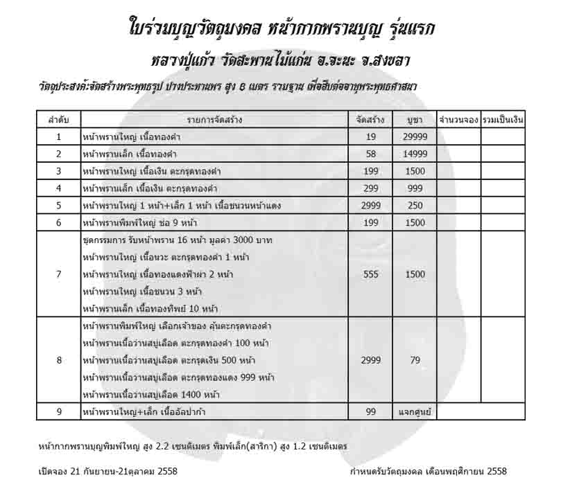 1 หน้าพรานใหญ่ เนื้อทองคำ 29999 แถมหน้าพรานพิมพ์ใหญ่ 20 หน้า โทรจอง