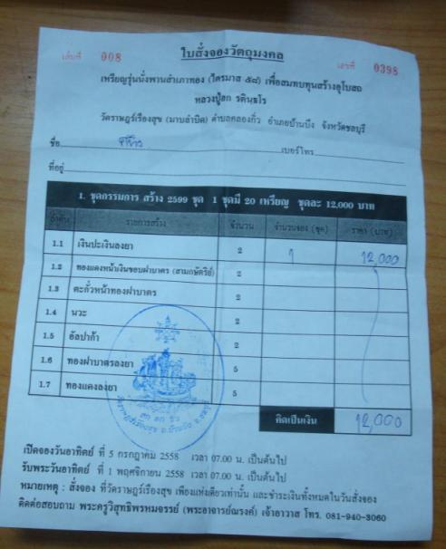 รายการที่ 1.3 เนื้อตะกั่วหน้าทองฝาบาตร มียอด 1องค์ๆ 2800 บาท
