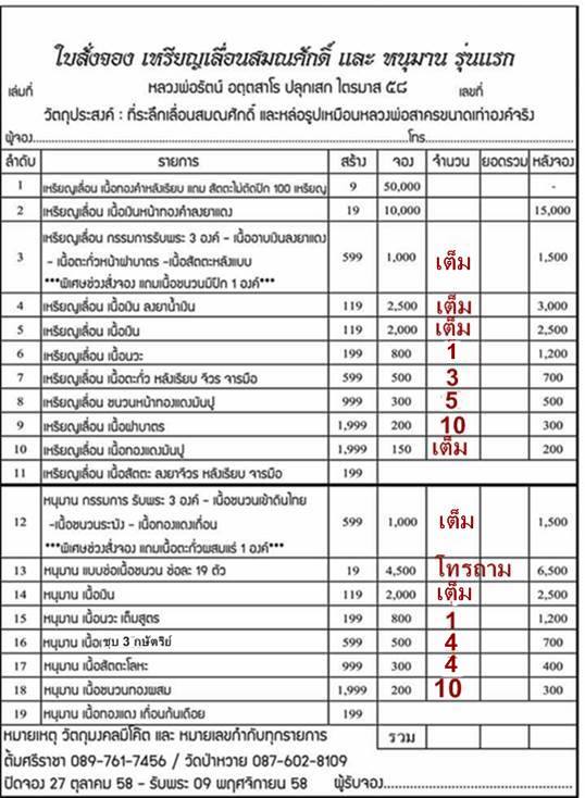 เปิดจองตามรายการราคาวัดค่ะ