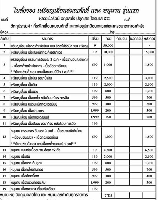 รายการที่ 3. เหรียญเลื่อนชุดกรรมการ 1ชุด รับพระ 3 เหรียญ=1000 บาท(พิเศษช่วงสั่งจองแถมชนวนมีปีก1องค์)