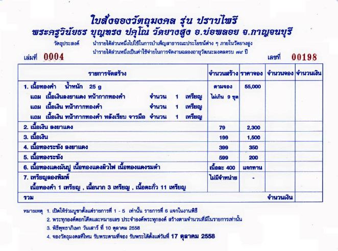 สนใจลงชื่อจองบูชาได้เลยครับ โอนเงินภายใน ๑ วันครับ