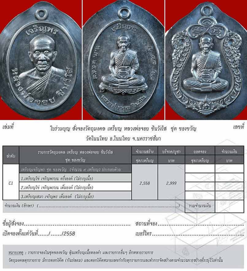 เหรียญเจริญพร หลวงพ่อจอย กำหนดรับพระประมาณ เดือน พ.ย.58