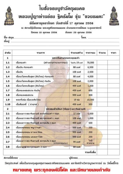รายการจัดสร้างวัตถุมงคลรุ่น(รวย)อมตะ