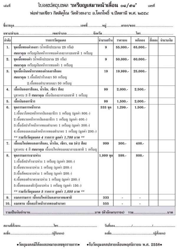 ***รวมรับวัตถุมงคล 4 รายการ มูลค่า 1,700 บาท