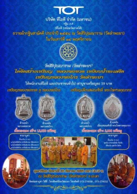 ติต่อบูชา ที่ โทรศัพท์ จังหวัดยะลา 073-274008 และ 073-274032