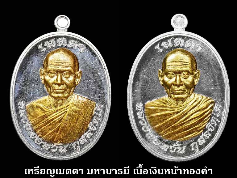 แบ่งจอง***เหรียญหลวงพ่อหวั่น วัดคลองคูณ รุ่นเมตตา มหาบารมี เนื้อเงินหน้ากากทองคำ1คู่ (ห่มเฉียง+ห่มคลุม)
