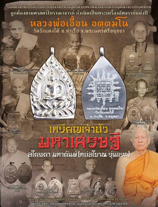 เปิดจองเหรียญเจ้าสัว มหาเศรษฐี อโยธยา มหายันต์ (หล่อโบราณ รุ่นแรก) หลวงพ่อเอื้อน วัดวังแดงใต้ จ.พระนครศรีอยุธยา
