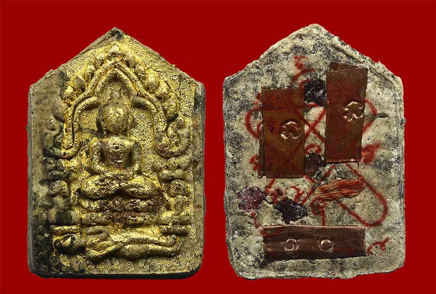 6.1เนื้อก้นครกผสมพระพักตร์หน้าทอง ตะกรุดทองแดง มียอด 2 องค์ๆละ 100 บาท