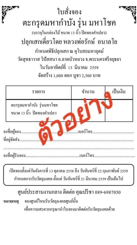 ...ตะกรุดสร้างจำนวน 1000 ดอก บูชาดอกละ 2,500 บาท เป็นตะกรุดจารมือทุกดอก คลุกผงพรายกุมาร ถักเชือก ลงรักปิดทอง 18K รันเลข พร้อมบรรจุอยู่ในกล่องไม้สักอย่างดี