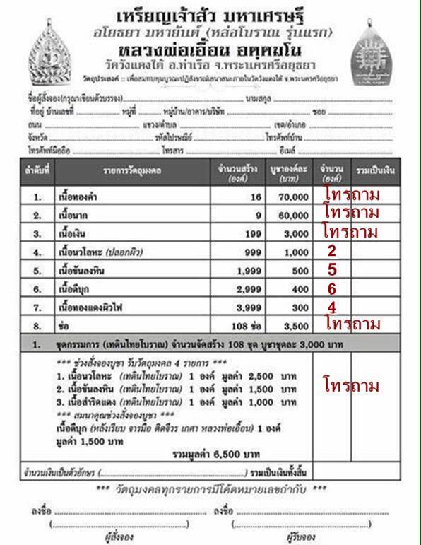 วัตถุประสงค์ เพือสมทบทุนบูรณะปฏิสังขรณ์เสนาสนะภายในวัดวังแดงใต้ จ.พระนครศรีอยุธยา