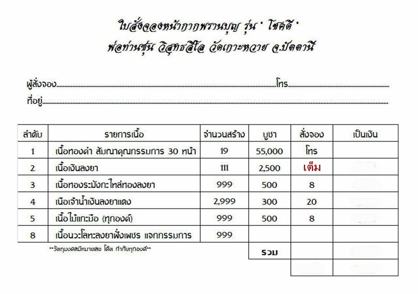 เปิดจองตามรายการราคาวัดค่ะ