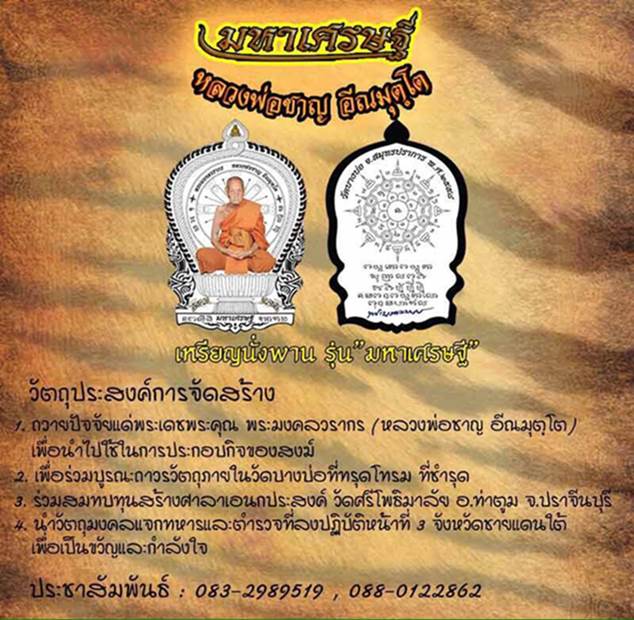เปิดจองเหรียญนั่งพาน รุ่นมหาเศรษฐี หลวงพ่อชาญ วัดบางบ่อ จ.สมุทรปราการ