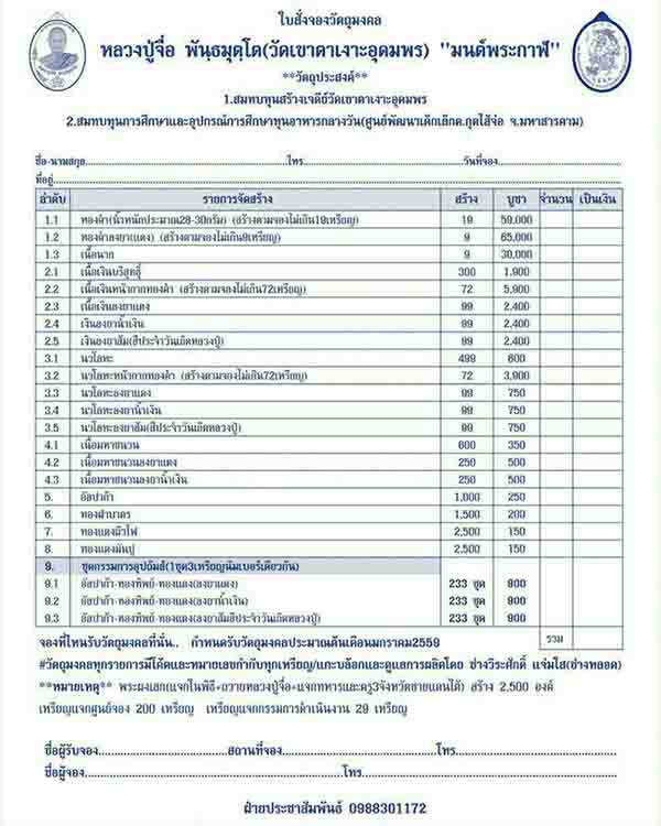 รายการที่ 9.1 ชุดกรรมการอุปถัมภ์ อัลปาก้า-ทองทิพย์-ทองแด(ลงยาส้ม สีประจำวันเกิดหลวงปู่) มียอด 2 ชุด ชุดละ 900 บาท
