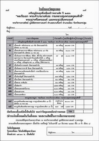 ๑.เพื่อสมนาคุณแก่ผู้สมทบทุนสร้างกำแพงแก้ว พระวิหารเทวสถิตย์ จ.นครปฐม