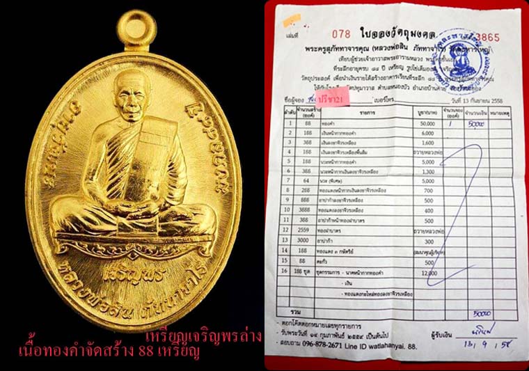 มี 1 ใบจอง ราคาใบละ 70000 บาท รับพระ วันอาทิตย์ที่ 14 ก.พ 2559 ที่วัดละหารใหญ่ เนื้อทองคำจัดสร้าง 88 เหรียญ