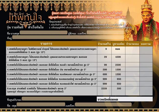 รายการที่ 4 มียอด 8 องค์ ราคาองค์ละ 1,500 บาท