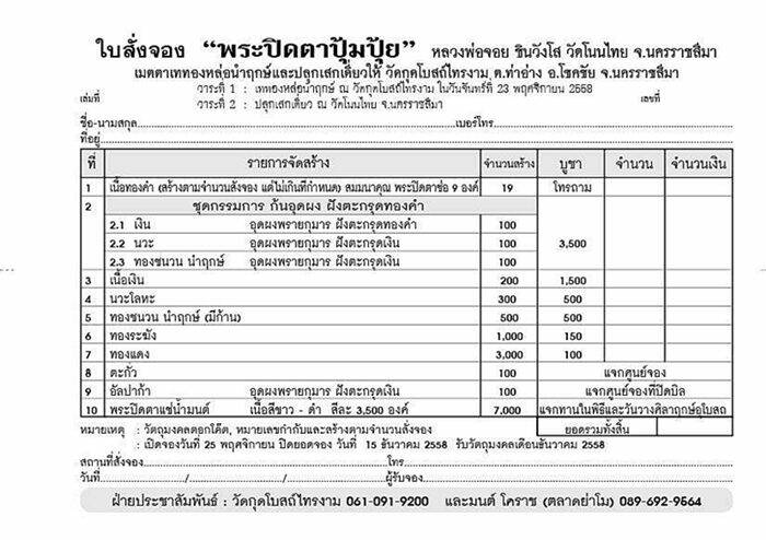 เปิดจองพระปิดตาปุ้มปุ้ย หลวงพ่อจอย วัดโนนไทย