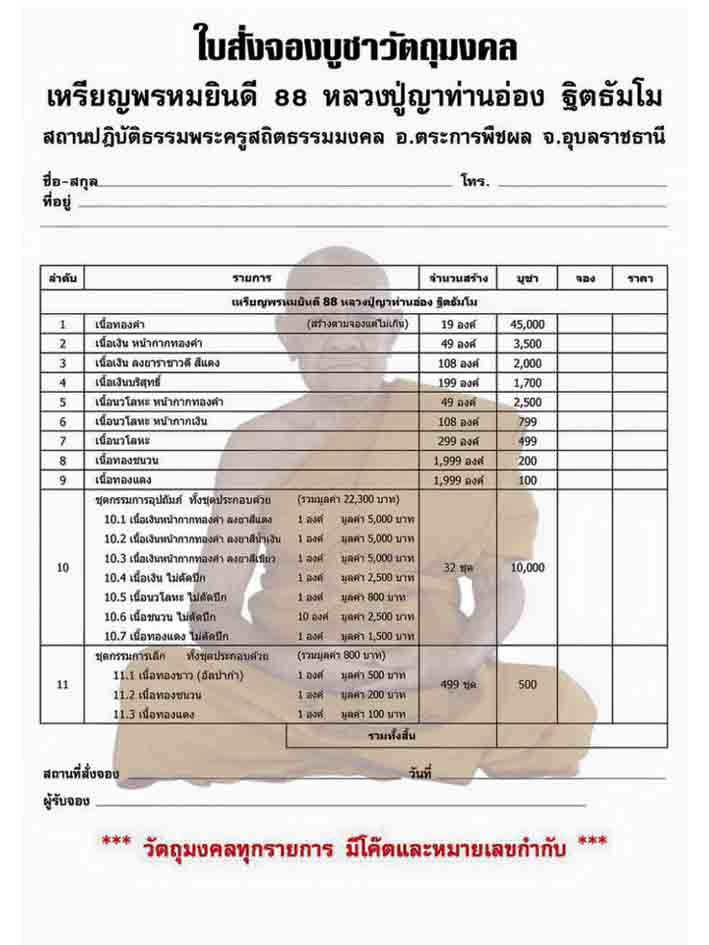 [[[เปิดจอง]]]หลวงปู่อ่อง ฐิตธัมโม วัดสิงหาญ จังหวัดอุบลราชธานี "รุ่น พรหมยินดี 88"