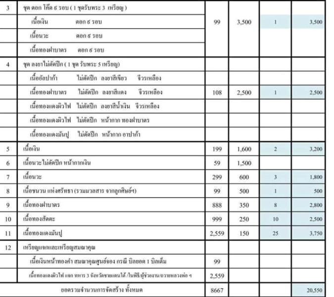 รายการที่9 เนื้อทองฝาบาตร มียอด8เหรียญๆละ 350บาท
