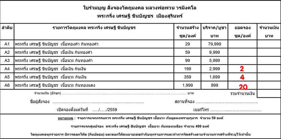รายการตามราคาจองครับ