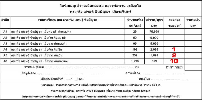 A6,มียอด10องค์ จองครบ5องค์ได้รับสิทธิ์จองA5จำนวน1องค์