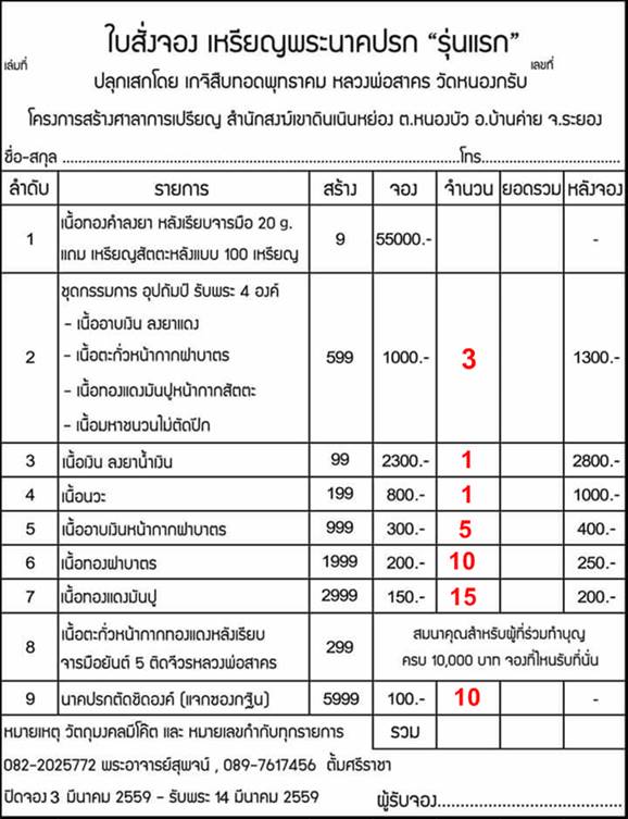 ปิดรับจอง 3 มี.ค.59 และรับวัตถุมงคล 14 มี.ค.59