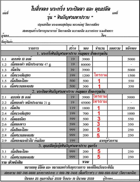 เปิดจองตามยอด ราคาวัด
