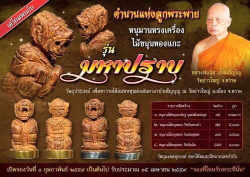 หนุมานทรงเครื่อง ไม้ขนุนทองแกะ รุ่นมหาปราบ ปี 2559