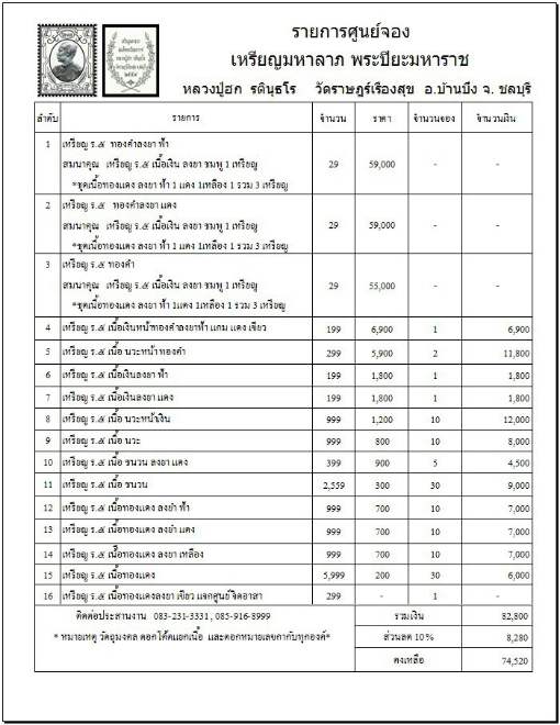5.เนื้อนวะหน้าทองคำ มียอด 2 เหรียญๆละ 5900 บาท