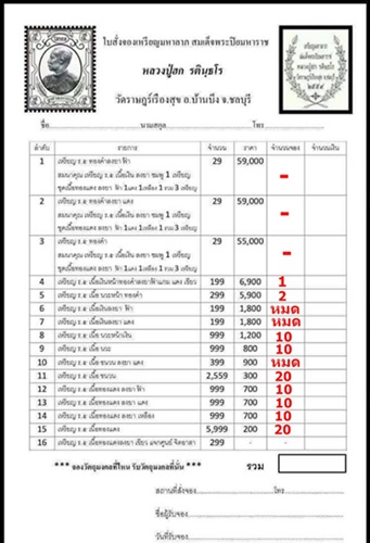 รายการ เหรียญมหาลาภ สมเด็จพระปิยมหาราช