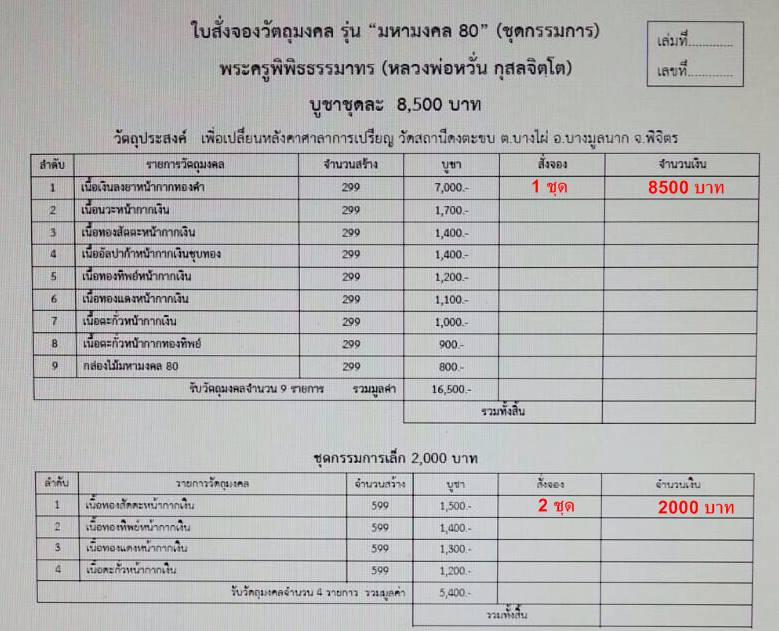 รายการที่เปิดจอง ราคาวัดค่ะ