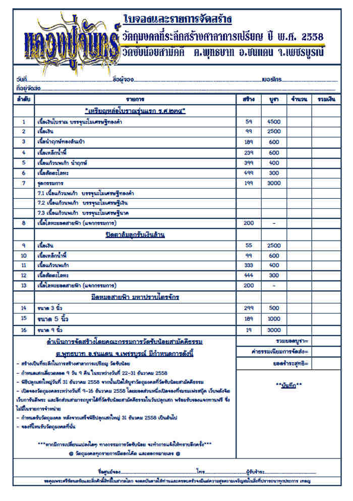 เปิดจองราคาบวก หลวงปู่จันทร์ วัดซับน้อย ปลุกเสกวัตถุมงคล รุ่นสร้างศาลาการเปรียญ