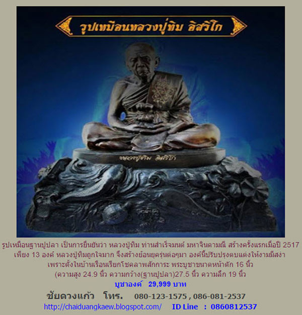 หัวข้อกระทู้ : เปิดจอง ! พระบูชา หลวงปู่ทิม ฐานปูปลาหน้าตัก 16 นิ้ว, 7 นิ้ว และหลวงปู่แก้ว เกสาโร