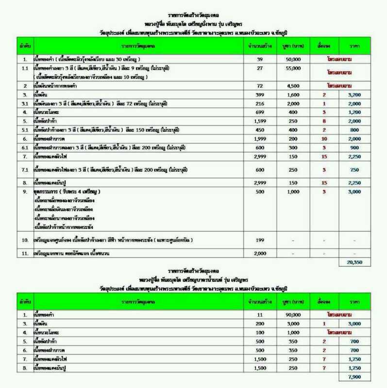 รายการที่8. เนื้อทองแดงมันปู มียอด 15 เหรียญ ราคาเหรียญละ 150