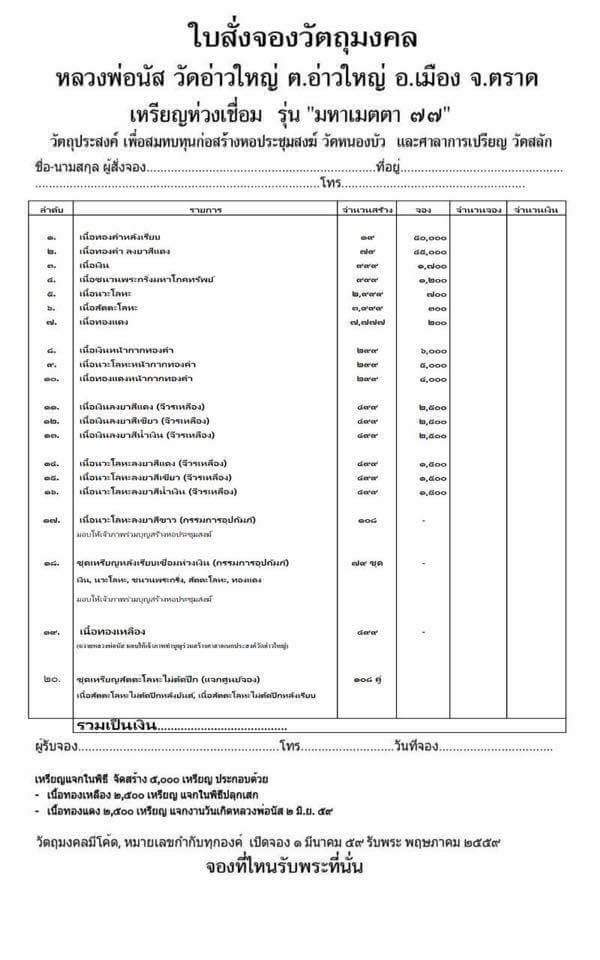 เปิดจองเหรียญห่วงเชื่อม หลวงพ่อนัส วัดอ่าวใหญ่