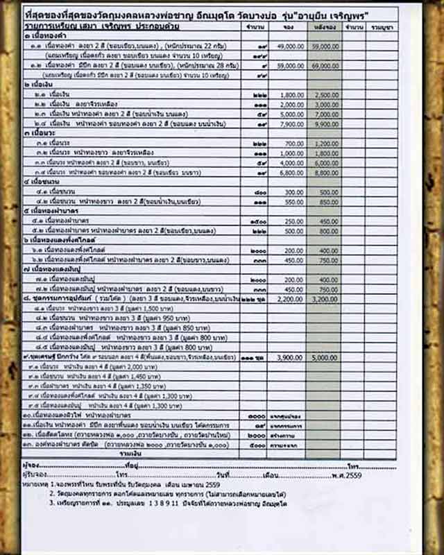 3.2 เนื้อนวะ หน้าทองขาว ลงยาจีวรเหลือง มี 1 เหรียญๆละ 1,000 บาท