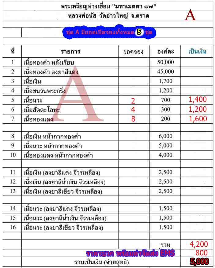 ราคาชุดละ 5,000 บาท