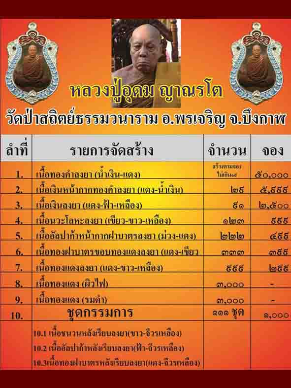 [[[เปิดจอง]]]รุ่นอุดมโชค โภคทรัพย์ หลวงปู่อุดม ญาณรโต วัดป่าสถิตย์ธรรมวนาราม อ.พรเจริญ จ.บึงกาฬ 2559