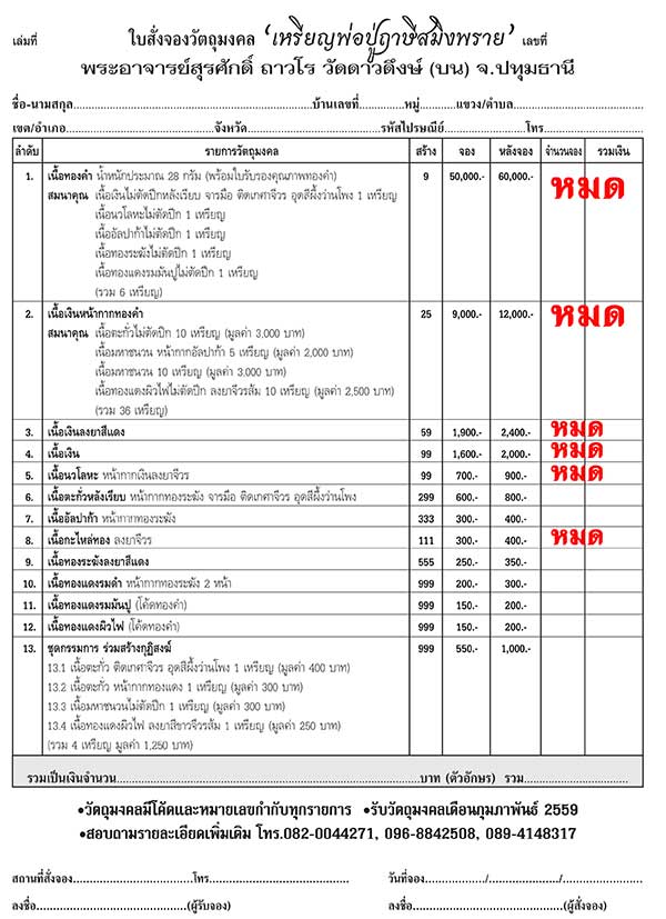 เปิดจองตามรายการที่เหลือครับ