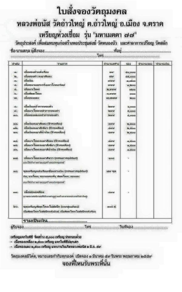 โอนเงินเพื่อสั่งจองบูชา ภายใน 1 วัน หลังจากปิดจอง ได้ที่
