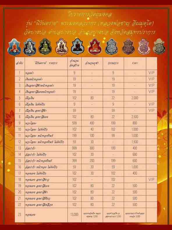 วัตถุมงคล รุ่น"นิรันตราย" ปลุกเสกเมื่อวันที่ 13 กุมภาพันธ 2559 พร้อมกับ รุ่น"สร้างบารมี"ที่ผ่านมา วัตถุมงคลทุกรายการ มีโค๊ต และหมายเลขกำกับ ทุกเหรียญ