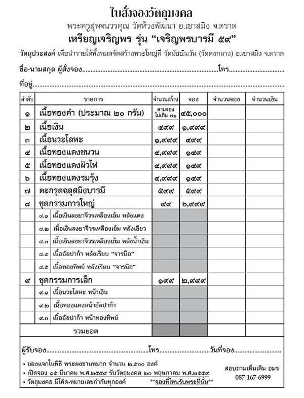 โอนเงินเพื่อสั่งจองบูชา ภายใน 1 วัน หลังจากปิดจอง ได้ที่